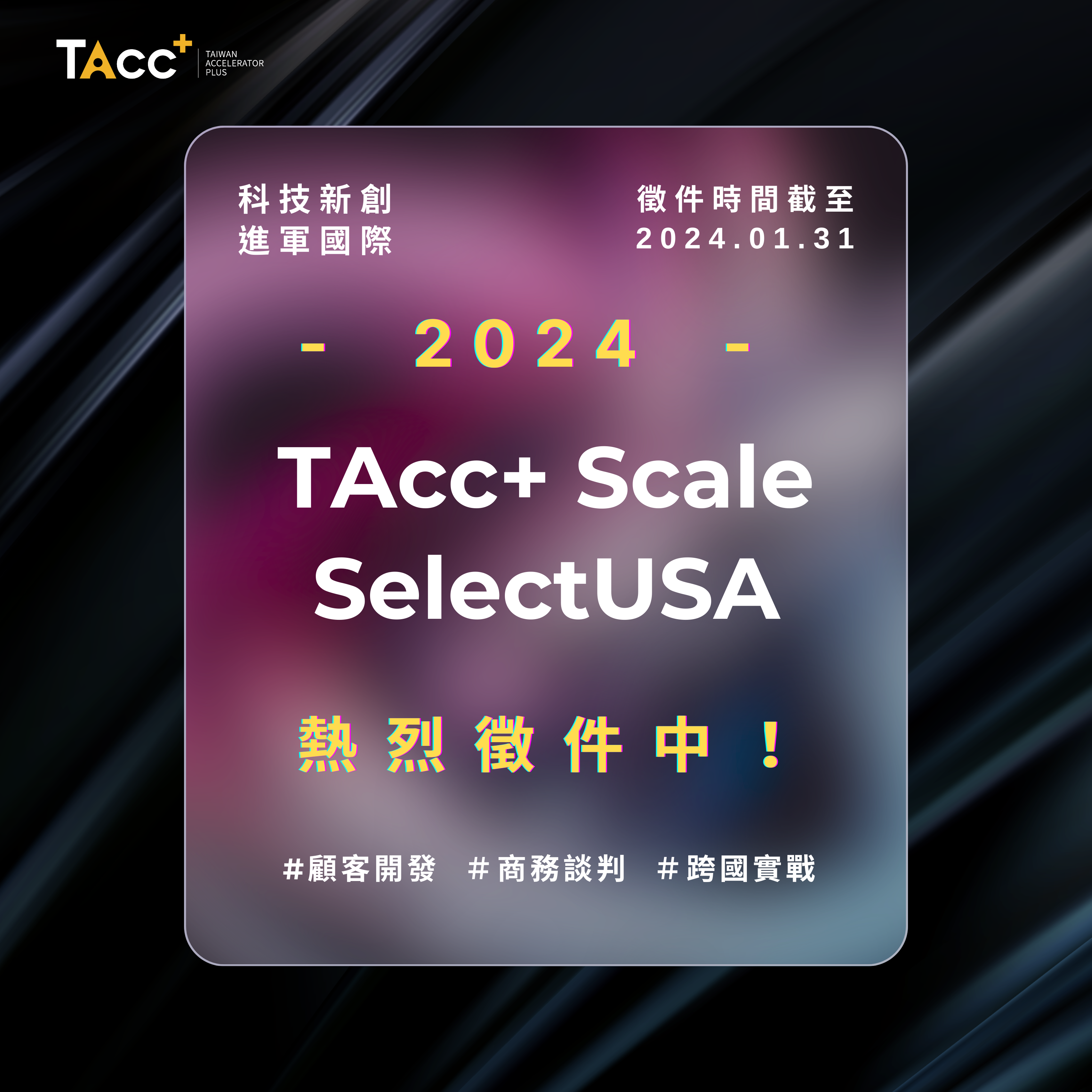 【2024 TAcc+ Scale & SelectUSA 臺灣隊徵選中!】即日起至 2024.01.31 報名截止