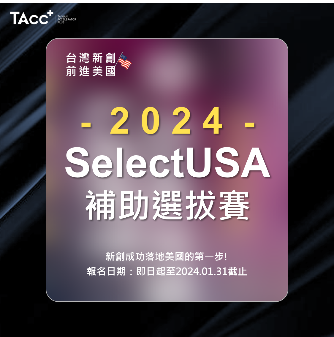 【2024 TAcc+ SelectUSA 臺灣隊徵選中!】邀請所有有志挑戰國際市場的新創公司參與!