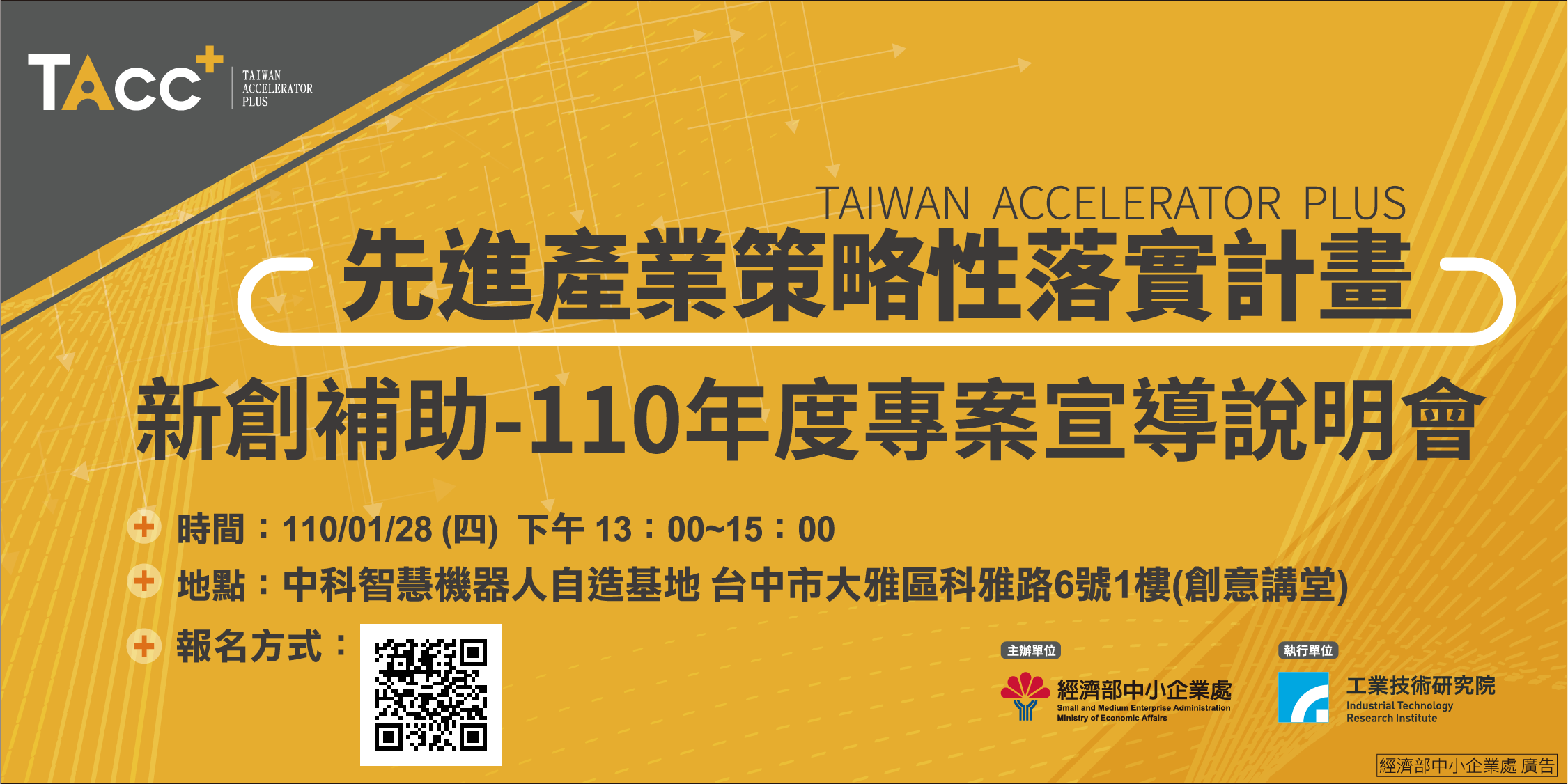 經濟部中小企業處為加值輔導具國際競爭力之優質臺灣新創企業,提供新創補助及資源以加速新創事業躍升並獲得A輪募資及市場訂單之合作機會,讓臺灣新創企業登上全球舞臺。