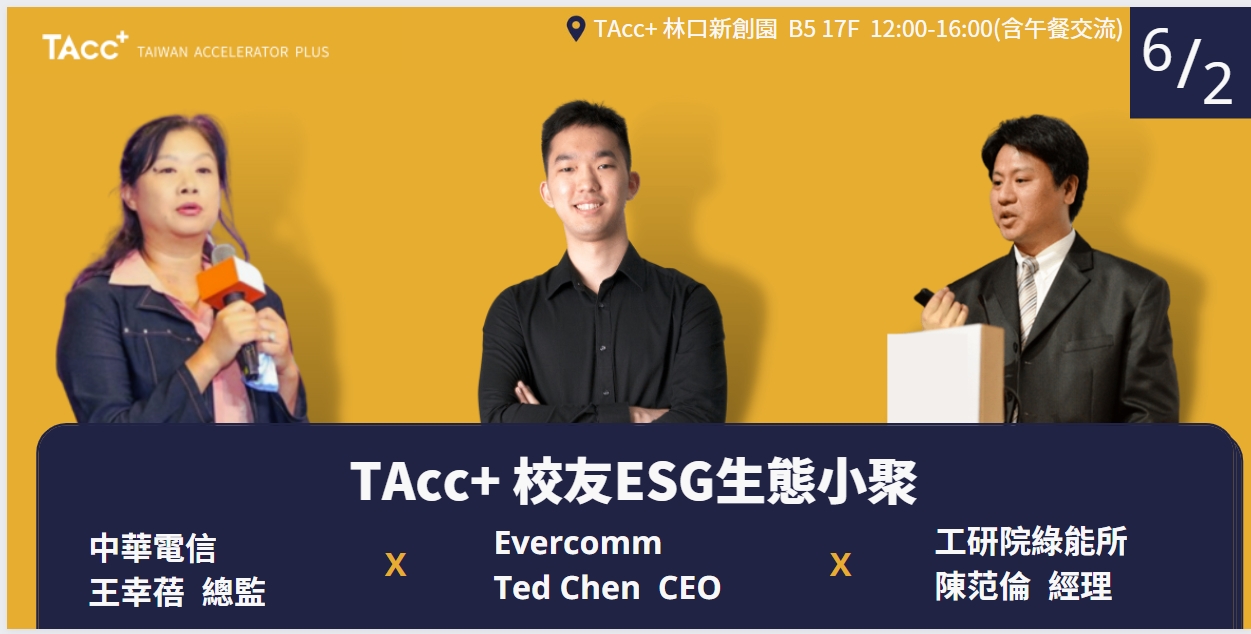 ▍陣容:中華電信投資總監 王幸蓓 ✕ 工研院綠能所 陳范倫經理 ✕ EVERCOMM 創辦人 TED