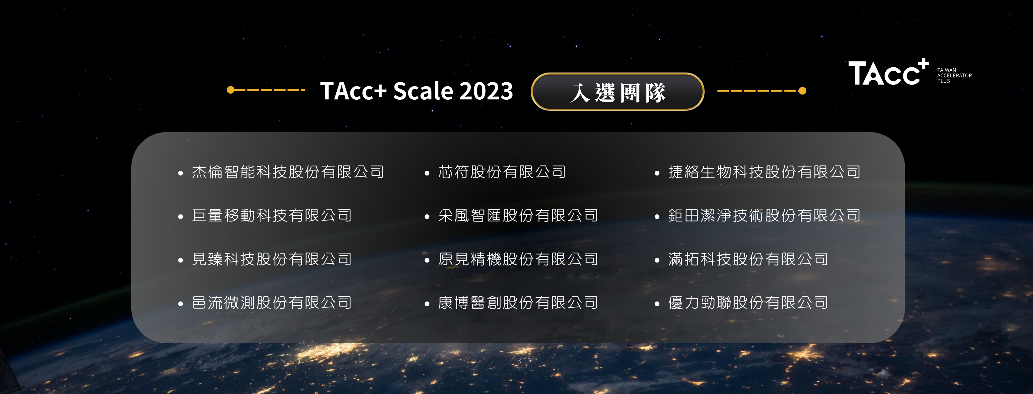 感謝各位優秀的新創報名參加,競爭非常激烈!我們很榮幸地宣布以下入選新創即將加入TAcc+ Scale,恭喜他們!我們將在未來的幾個月內,一起解決規模化成長的關鍵議題!也非常感謝所有新創夥伴的支持和參與。