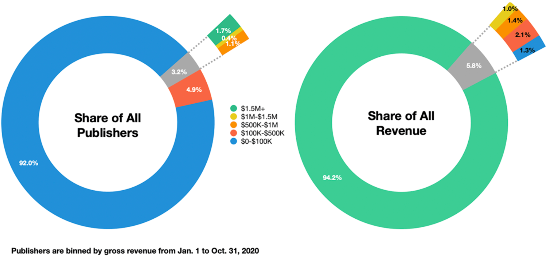- “Publishers Earning Under $1 Million Generate Just 2% of App Store Games Revenue,” Sensor Tower, 2021.