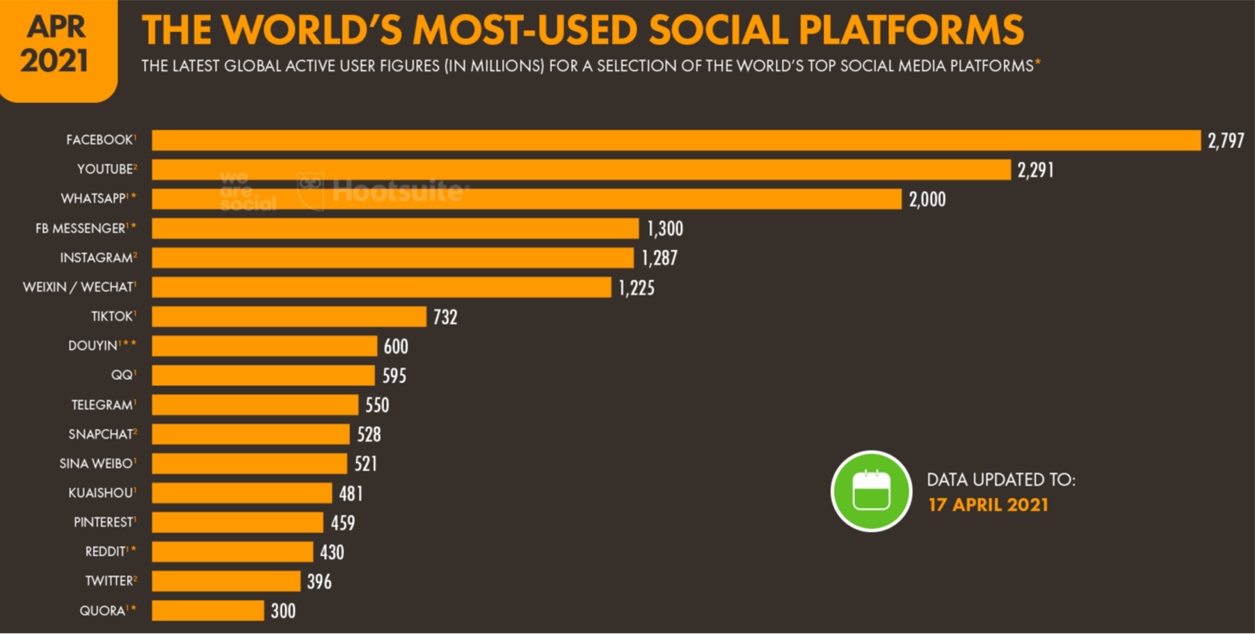- “DIGITAL 2021 APRIL GLOBAL STATSHOT REPORT,” Data reportal, 2021.